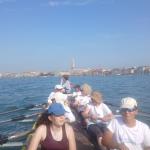 Pfingstmontag ging es noch einmal mit voller Besatzung aufs Wasser. Leider war es heute ziemlich windig, so dass wir geschützte Route über die Lagune durch Treporti bis zur Schleuse Cavallino bei Jesolo ruderten. Auf dem Rückweg machten wir Cavallino Downtown fest und versorgten uns mit Eis. Trotz des heftigen Windes war es mit 25 Grad ziemlich warm. Am Abend wurde die Barke aufgeladen, da uns am nächsten Tag rund ein Dutzend teilnehmer verlassen musste. (kein Urlaub, bzw. Schule)
