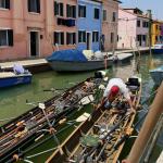Nun war Kultur angesagt. Allerdings mit dem Boot. Erstes Ziel Torcello (hinter Burano). Eine Kosterruine, teilweise Baustelle auf jeden Fall sehenswert. Allerdings raten wir von der nördlichen Anlegestelle an der Basilica ab. Die Wand ist sehr hoch und nur für sehr gelenkige Leute zu erklimmen. Man kann von hier durch einen winzigen Graben zu einer flachen Anlegestelle rudern, oder eher paddelnm, alles sehr eng und auch zum Anlegen nicht viel Platz. Danach wechselten wir die Insel nach Burano. Anlegen kann man hier in einigen Seitengräben. Burano ist im Zentrum extrem touristisch, aber bereits ein paar Gassen oder Kanäle daneben ist nichts mehr los. Zwei Stunden später wechselten wir wieder die Insel. Einen Kilometer südlich liegt San Francesco del Deserto. Ein aktives Franziskanerkloster, das nur mit dem eigenen Boot zu erreichen ist, es gibt keine Vaporetto Verbindung, aber einen für Ruderboote geeigneten, geschützen Hafen. Pünktlich um 15 Uhr öffnet das Kloster für Führungen. Der Mönch guckte einigermaßen entsetzt über so viele Pilgerer. Das Kloster ist das absolute Highlight, historische Gebäude, eine informative Führug, einen tollen Klostergarten in dem man den Schatten genießen kann (bei 31 Grad wichtig). Vor allem der krasse Unterschied zum Übertourismus auf Burano in nur 1 km Entfernung. Danach zurück nach Punta Sabbioni.