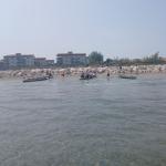 Am letzten Rudertag drehte eine Mannschaft eine Runde über die Lagune, während die anderen Boote noch einmal auf die Adria zum Baden wollten. Allerdings gab es heute leichten Wind. Einige der Ruderer mit wenig Meereserfahrung waren doch überrascht, wie schwierig das schon bei 2 Windstärken sein kann. Denen würden wir doch mal die Teilnahme an einem Langtur-Styrmands-Kurs in Dänemark empfehlen, oder den RC-KST Obmannskurs der Stufe 5. Bei leichten Wellen kann man durchaus noch vorwärts anlegen, wenn auch rückwärts besser wäre. Aber bei keinem Wellengang legt man im 45 Grad Winkel oder gar quer an. Es ist nicht passiert, die Brandung war schwach, aber ich hoffe das ist den Ruderern eine Lehre. Nach der Tour wurden die Boote aufgeladen und zum Abschluß gönnten wir uns ein Abendessen in der örlichen Pizzeria. Durchaus empfehlenswert und relativ preiswert.